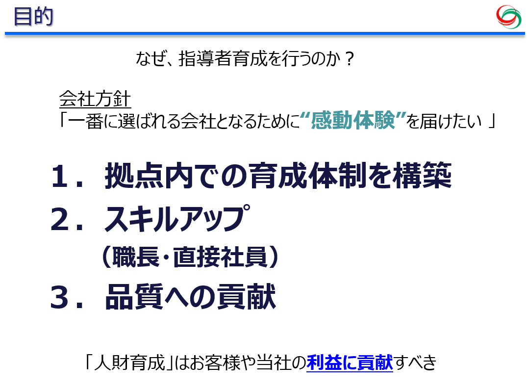 職長1ON1QC活動においては、管理監督者の問題解決意識向上を目的とした改善事例9件の発表を行いました。いずれの事例も、QC手法を活用して現場の課題解決に取り組んだ大変優れた内容でした。特に、現場に最も近い職長が課題に向き合い、自ら問題解決手法を習得した点は大きな成果です。「分析して改善する力」が高まり、社員と拠点双方の成長につながりました。 今後も更なる改善活動を継続し、お客様へ品質・技術・改善で感動体験をお届けできるよう邁進してまいります。